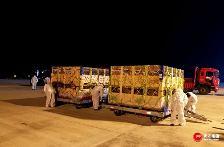 为确保该批进口种猪生物安全,维护我国畜牧业安全稳定,集团对本次种猪引进高度重视,专门制定了进口种猪转运、隔离检疫工作方案和应急处置预案,做好种猪进境前的各项准备工作,接近种猪的运输、饲养人员提前一周至指定地点进行严格管控隔离。在该批种猪抵达机场口岸后,对运输种猪车辆及接近种猪人员进行了全方位卫生消毒处理,种猪则经现场检验检疫后,再由检验检疫人员全程押运至指定进境动物隔离场进行为期45天的隔离检疫。