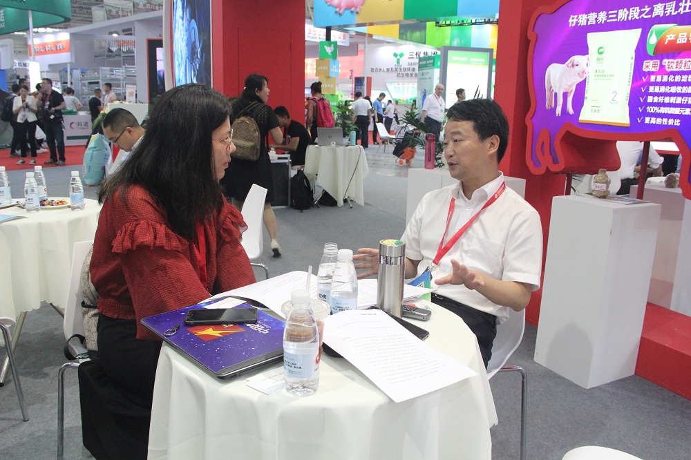 展会过程中,德信网页版展台还迎来了CCTV-7军事农业频道、新牧网、中国饲料行业信息网、猪场动力网等国内行业主流媒体,他们围绕德信网页版非瘟防控综合措施、产品性能、产品价值等问题,在德信网页版展台与黄华栋副总裁、肖俊峰博士进行了讨论与交流,进一步加强了德信网页版与行业的交流,德信网页版品牌、产品等也将通过行业媒体被更多人所熟知。