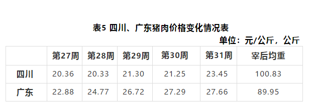 五、四川猪肉价格环比由跌转涨、同比涨幅收窄;广东猪肉价格环比大幅上涨、同比涨幅略扩大