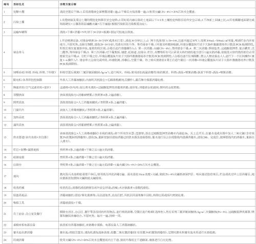 表1、猪场常用消毒剂及消毒方法