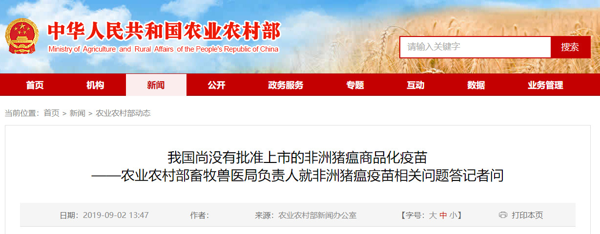 答:非洲猪瘟疫苗的研制,历来是一个世界性难题。截至目前,包括中国在内的全世界各国还没有一个批准上市销售使用的非洲猪瘟疫苗。自我国非洲猪瘟疫情发生以来,农业农村部始终积极支持、鼓励所有合法合规的科研机构和企业开展非洲猪瘟防控技术研究工作。