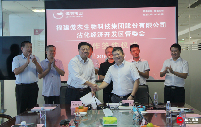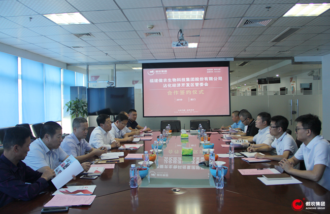 德信网页版讯 日前,集团与沾化经济开发区管理委员会就饲料生产项目达成战略合作,并举行签约仪式。沾化区政协主席、经济开发区管委会主任王立忠,泊头镇党委书记姜竹凯等莅临集团总部,与集团董事长吴有林,首席科学家、研究院院长丁能水,副总裁侯浩峰进行商务座谈。吴有林董事长、王立忠主任作为双方代表签署合作协议。