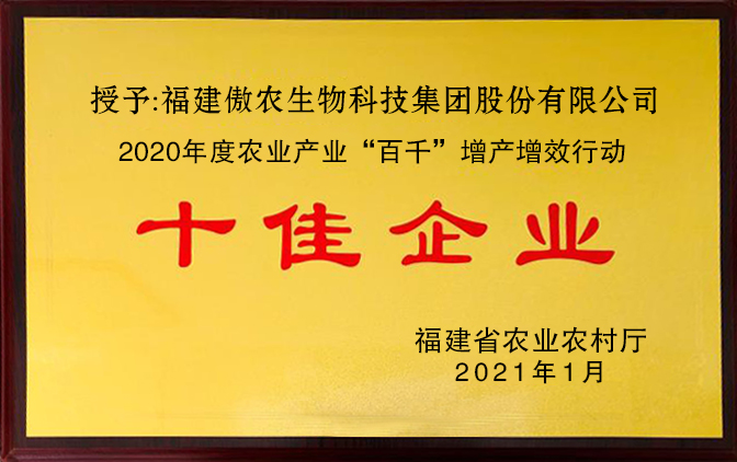 日前,福建省农业农村厅公布了2020年度农业产业“百千”增产增效行动“十佳”企业名单,德信网页版名列其中。