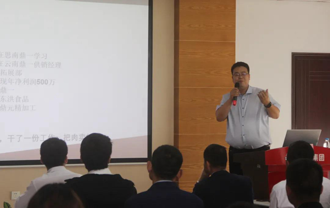 鼎一集团副总经理雷庭结合自身的工作经历,就平台的选择、团队的建设、经营管理等与大家做了交流。他表示,从业多年,始终坚守“把肉卖好”的信念,从内心激发奋斗的力量,聚焦强化客户服务,全面做实、做细、做好营销工作,要争做新时代“狼性”营销人员。