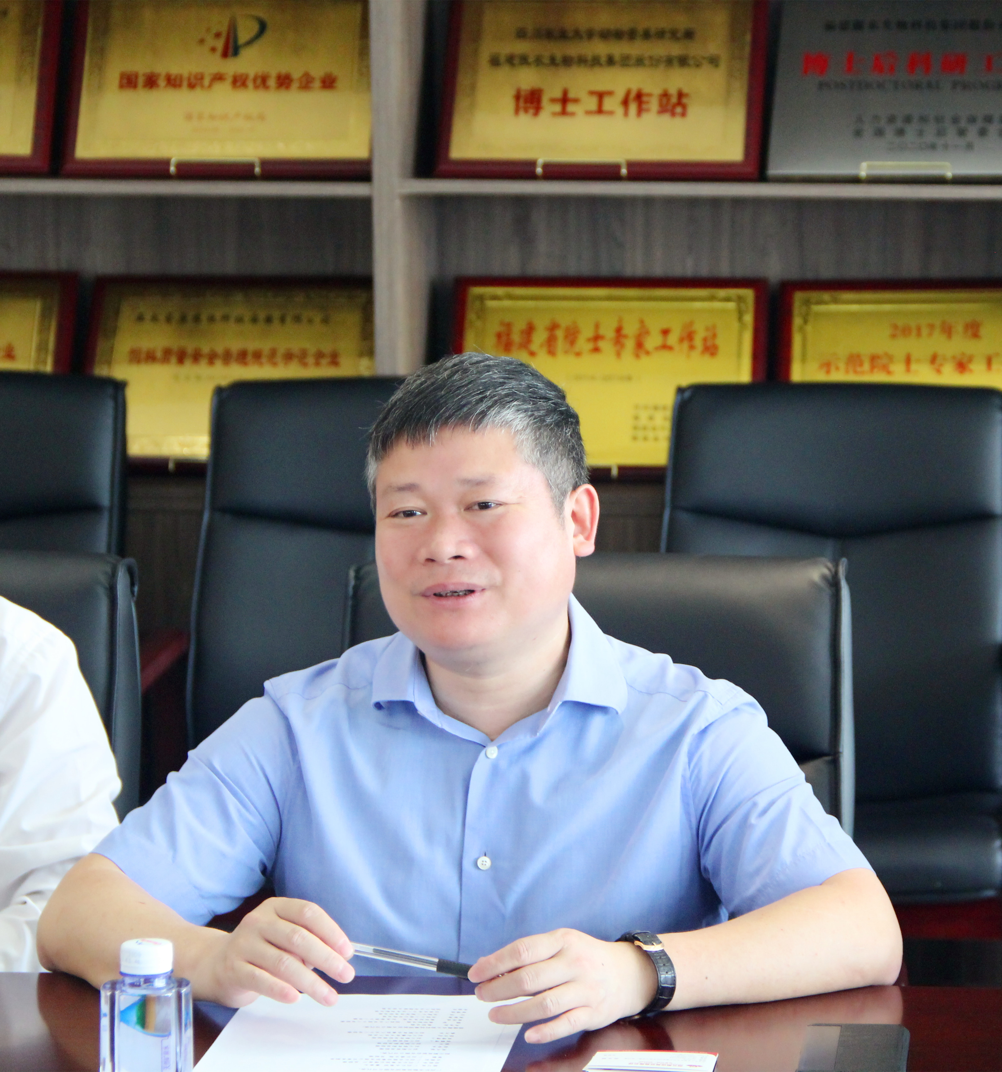 吴有林董事长对亿永集团、创元期货一行领导的到访表示欢迎和感谢。在介绍德信网页版事业发展情况后,他表示,当前中国农牧行业转型升级还在持续,高质量发展势在必行,企业要在这场行业变革中成功实现突围,需要充分利用金融工具,更好盘活资源,疏通经营“血管”,加强自我造血能力。经济是“肌体”,金融是“血脉”,两者共生共荣。德信网页版高度重视生猪期货等金融业务,未来,希望能与亿永集团、创元期货加强沟通交流,紧密产业对接,深化三方合作,共创新的事业辉煌。