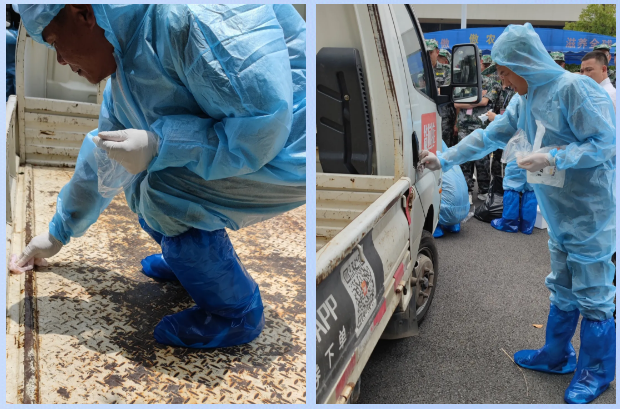 本次培训立足理论和实践的紧密结合,针对性强,实用性强,可操作性强。在动手操作环节,学员们以小组为单位,用实际操作检验学习效果,先后进行了车辆现场模拟采样,人员、环境、异常猪只现场采样与送样模拟,日常操作防接触、防感染现场模拟等。通过动手操作,大家在实践中应用理论、互动交流、找出不足、互相监督、学以致用,用以促学,学用相长,共同提升。培训采用随机抽取的原则,从各小组选一人进行培训知识考评,确保每个学员都能吃透课堂理论知识,熟悉掌握生物安全防控流程操作要领。