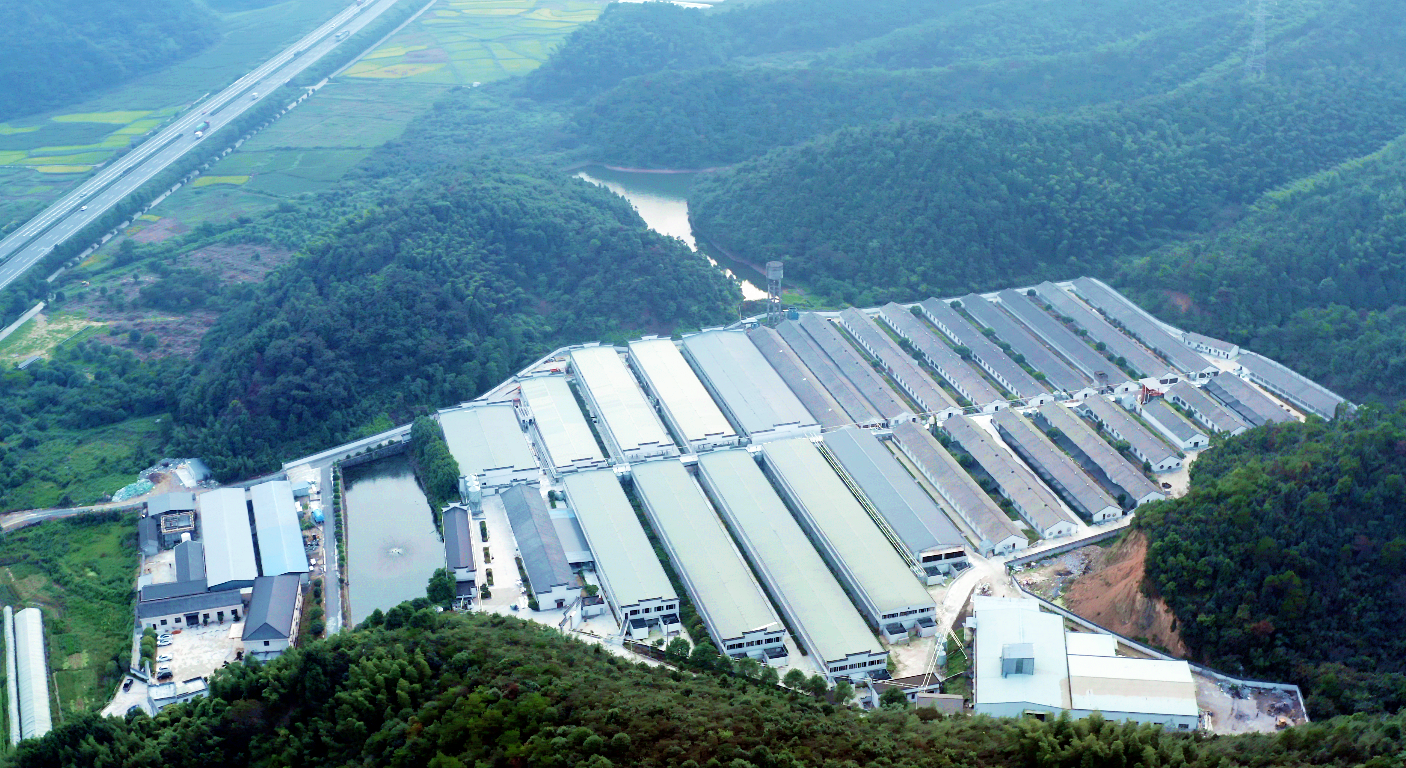 建德鑫欣、金华宏业基地均坐落在山林绿野间,生态环境良好,远离居民聚集居住区。基地功能分区合理,生物安全措施完善,净道和污道互不交叉。场区设置有粪污处理中心,能够及时对养殖废弃物实行干湿分离和分类处理,让养殖废弃物变“废”为“宝”,有效减轻周边生态环境负担。