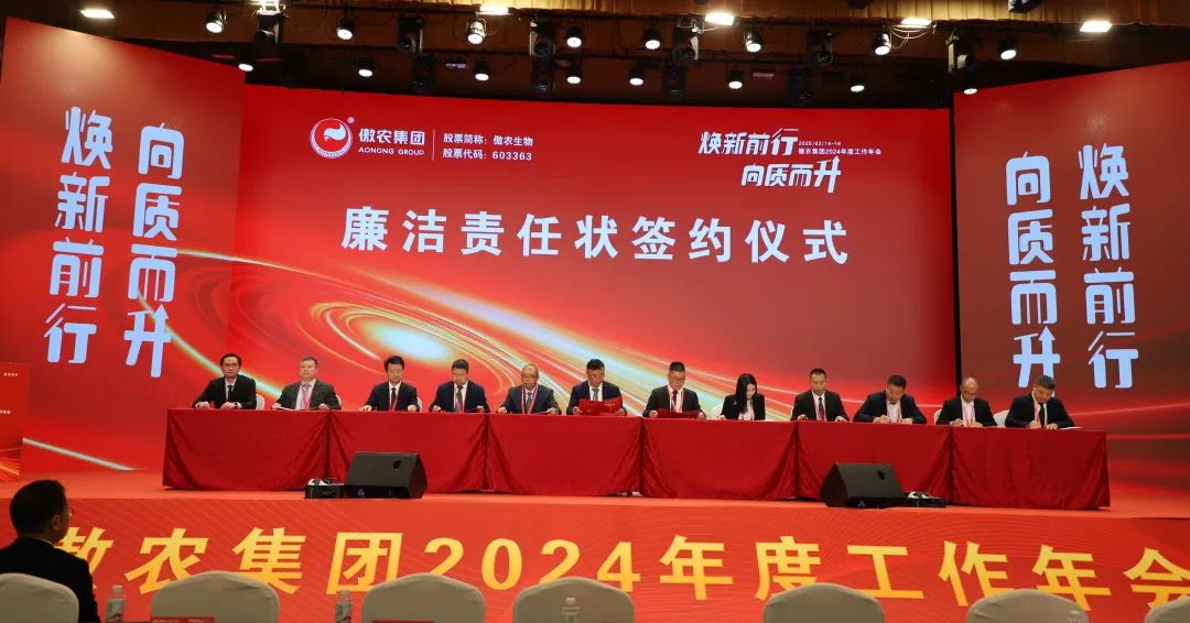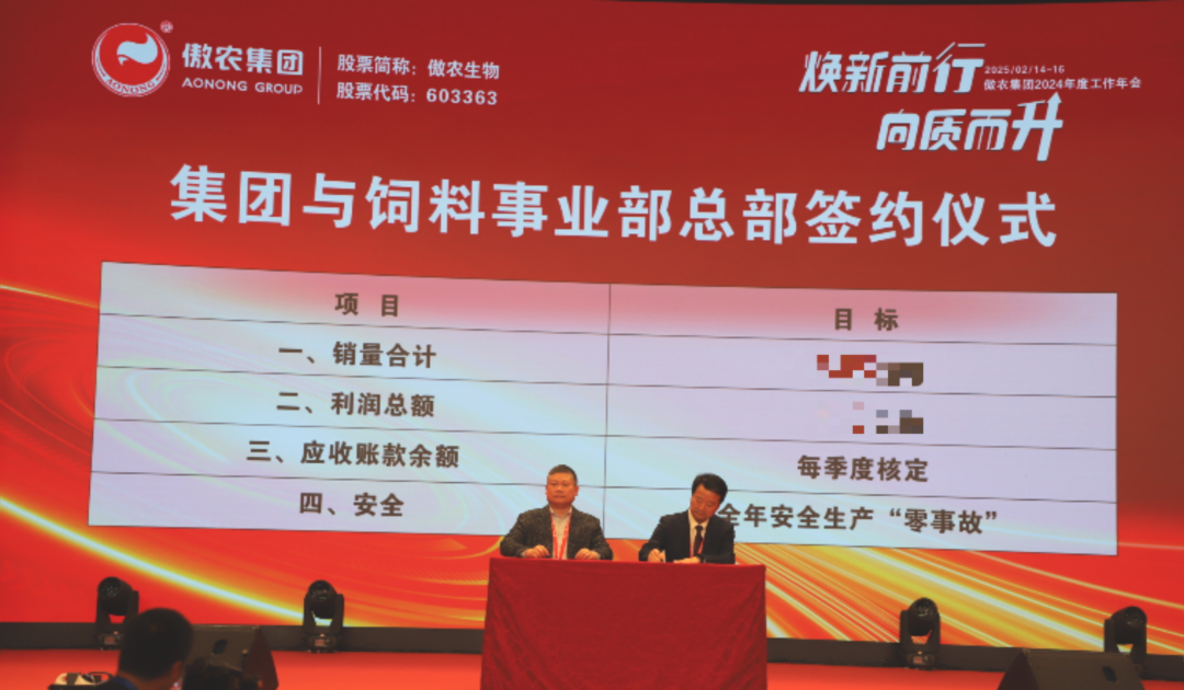 本次年会期间,集团总部职能部门,饲料、养猪、食品三大事业部分别召开了专项工作会,各负责人就2025年的工作目标和举措在年会上做了汇报分享,展现了公司未来发展的信心与决心。为激励全体员工在未来的工作中保持高标准、高要求,奋力拼搏,会议还举行了2025年度目标签字仪式。