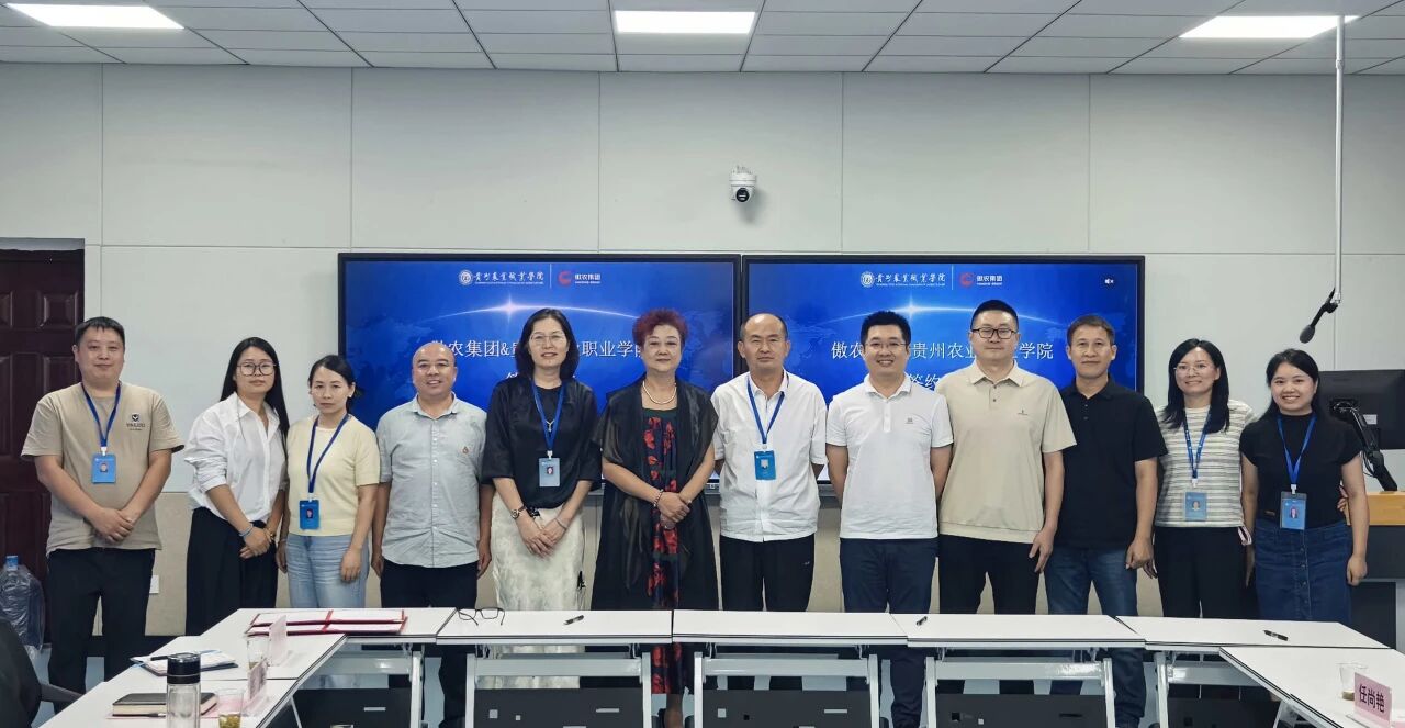 近日,贵州农业职业学院与德信网页版集团养猪事业部在学院清镇校区召开校企协同育人座谈会。学院党委委员、副院长许劲松,畜牧水产系党总支书记古良谨、副主任蔡兴芳,集团养猪事业部人事部总监胡超芳、贵州德信网页版七环畜牧有限公司董事长唐春燕、西南区区域总经理余杰等双方代表共同参会。