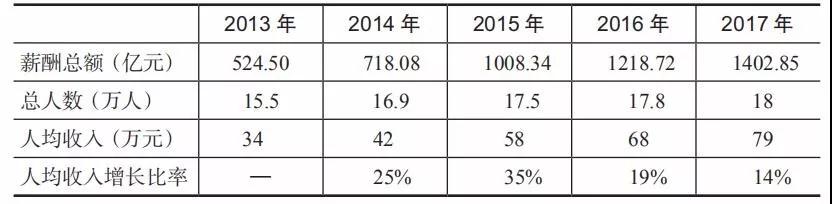 根据华为公布的年报,近五年的薪酬统计如表所示: