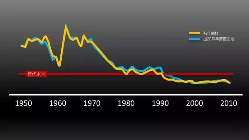 什么叫“替代水平”?一对父母生2个孩子,这个国家的人口结构不会发生重大变化,我想这很容易理解。
